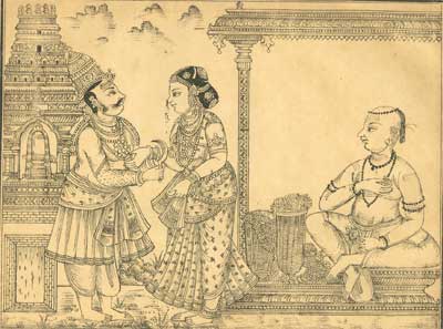 queen rolled on the floor, in pain. On hearing her wails, Kazharchingar came