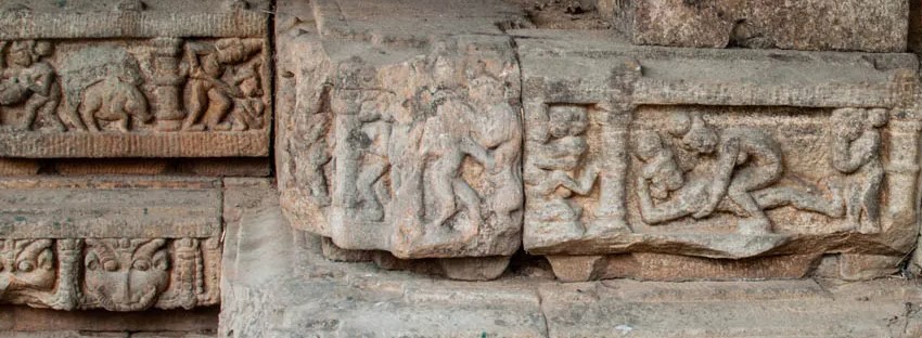 Erotic miniature sculptures in the ruins of Madan Kamdev |